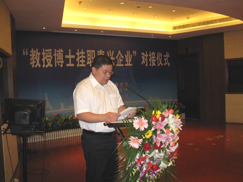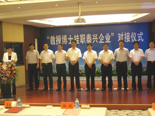 圖為泰州市委常委、組織部部長(zhǎng)陸新講話 (記者 馬宏飛 特約記者 肖春華)8月16日上午,市委、市政府舉行“教授博士掛職泰興企業(yè)”對(duì)接儀式,聘請(qǐng)來(lái)自江蘇科技大學(xué)、浙江大學(xué)等國(guó)內(nèi)26所高等院校的78名教授、博士到我市30多家企業(yè)掛職。