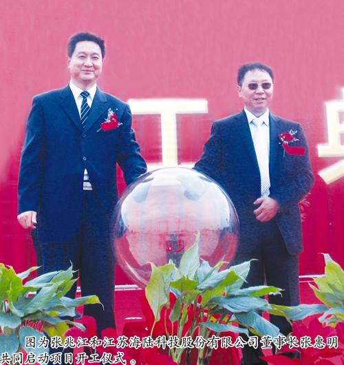 11月2日上午,總投資10億元的海陸新材料科技項目在虹橋工業園區正式開工,市委書記張兆江、市長高亞梓,市領導張澤民、劉榮華、張偉,江蘇揚子江船業集團公司董事長任元林,江蘇海陸科技股份有限公司董事長張惠明等出席開工典禮并為項目奠基培土。 江蘇海陸新材料科技有限公司由江陰市的江蘇海陸科技股份有限公司投資10億元新建,占地面積近250畝,設計開發制造年產20萬噸新一代涂覆金屬裝飾板、年產2萬套隔熱保溫環保節能箱式集成房屋和年產50萬噸無機絕熱保溫防火新材料三大類項目,產品主要用于建筑及船舶制造領域。項目將于2012年底建成投產,達產后年可實現銷售30億元。