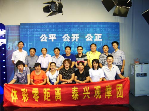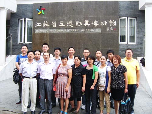 體彩零距離泰興觀摩團 這天下午3時40分,由彩民和體彩業主等20人組成的“體彩零距離泰興觀摩團”抵達省城南京,首先冒雨來到全國首家彩票博物館——江蘇省五環彩票博物館參觀。該館集彩票陳列、展覽、集藏于一體,總面積922平方米,通過觀看即開型彩票和電腦有紙彩票的發展過程和很多實物展覽,使大家對中國體育彩票發展歷史和體育彩票支持國家建設有了全面的認識。 當晚8時,在省體彩中心工作人員引領下,經過嚴格安檢,并將包裹以及所有手機、照相機等電子產品和硬幣等金屬制品寄存之后,大家穿過3道安全門,來到位于江蘇教育電視臺的體彩開獎直播間。迎面的墻壁上有“中國體育彩票”幾個大字。在大字下方,一個齊人高的木匣子矗立著,工作人員解惑說,這個木匣子是搖獎機的保護罩。現場還有一只貼有封條的保險箱,里面放有開獎用的號球。