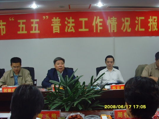 (2008年6月17日) 據(jù)中央、省和泰州市的統(tǒng)一部署,我市在認(rèn)真總結(jié)前四個(gè)五年普法教育的基礎(chǔ)上,圍繞“五五”普法目標(biāo)任務(wù),深入貫徹《法治江蘇建設(shè)綱要》,全市的“五五”普法工作開(kāi)局良好,運(yùn)行有序,進(jìn)展順利,初步完成了由過(guò)渡銜接、啟動(dòng)準(zhǔn)備轉(zhuǎn)入全面實(shí)施的階段性工作任務(wù)。2006年,我市普法辦被省人事廳、司法廳表彰為先進(jìn)集體。現(xiàn)將具體工作情況匯報(bào)如下: 在“四五”結(jié)束,“五五”普法即將啟動(dòng)之際,我市專題召開(kāi)法制宣傳教育領(lǐng)導(dǎo)小組全體成員會(huì)議,學(xué)習(xí)貫徹上級(jí)法制宣傳教育工作會(huì)議精神,討論全市“五五”普法工作的總體思路,研究部署啟動(dòng)階段的各項(xiàng)基礎(chǔ)性準(zhǔn)備工作,主要抓了三件事: 一是制定規(guī)劃,保障“五五”普法工作的有序運(yùn)行。為使規(guī)劃符合我市實(shí)際,規(guī)劃草案出臺(tái)前,我們進(jìn)行了深入調(diào)研,向社會(huì)各界發(fā)放 “五五”普法問(wèn)卷調(diào)查表1萬(wàn)5千多份。同時(shí),先后組織由人大代表、政協(xié)委員,機(jī)關(guān)部門(mén)、鄉(xiāng)鎮(zhèn)、企業(yè)、學(xué)校等企事業(yè)單位負(fù)責(zé)人和職工代表參加的不同層面座談會(huì),充分吸收來(lái)自社會(huì)各方面的意見(jiàn),并將反饋上來(lái)的意見(jiàn)和建議進(jìn)行分類梳理,在此基礎(chǔ)上,結(jié)合省、泰州市的宏觀規(guī)劃制定出《泰興市法制宣傳教育工作第五個(gè)五年規(guī)劃(討論稿)》,討論稿經(jīng)市領(lǐng)導(dǎo)小組各成員單位集中進(jìn)行修改后,報(bào)經(jīng)市政府常務(wù)會(huì)研究,最終規(guī)劃的正式文本以市委、市政府聯(lián)合批轉(zhuǎn)的形式下發(fā),市人大形成決議下發(fā)全市。我市制定的“五五”規(guī)劃,既體現(xiàn)了普法教育工作的連續(xù)性,又體現(xiàn)了與時(shí)俱進(jìn)的精神,從基層反映的情況看,規(guī)劃具有較強(qiáng)的針對(duì)性和可操作性。各鄉(xiāng)鎮(zhèn)和市級(jí)機(jī)關(guān)各部門(mén),依據(jù)五年總體規(guī)劃和年度工作意見(jiàn),結(jié)合本地、本部門(mén)實(shí)際,都相應(yīng)地制定了規(guī)劃和年度工作計(jì)劃。同時(shí),依據(jù)《江蘇省法制宣傳教育工作條例》,相應(yīng)地制定完善了一系列配套的工作制度,為新一輪普法工作的順利實(shí)施提供了基礎(chǔ)保障。 二是抓過(guò)渡銜接,全面部署新一輪五年普法和法治實(shí)踐任務(wù)。為有效地做好“四五”與“五五”普法的接茬銜接,06年,我市組織召開(kāi)了普法工作有史以來(lái)規(guī)格最高的全市“四五”普法總結(jié)表彰暨“五五”普法動(dòng)員大會(huì),市委常委及四套班子主要負(fù)責(zé)人參加會(huì)議。會(huì)上市委書(shū)記專題作了重要講話,市委副書(shū)記、市長(zhǎng)高亞梓同志作了《全面開(kāi)展新一輪五年普法教育 努力實(shí)現(xiàn)創(chuàng)建法制江蘇合格縣市目標(biāo)》的工作報(bào)告。會(huì)議表彰了21家“四五”普法先進(jìn)單位,44名先進(jìn)個(gè)人,全面系統(tǒng)地部署了全市第五個(gè)五年普法的工作任務(wù),明確提出了爭(zhēng)創(chuàng)全國(guó)“五五”普法工作先進(jìn)市的奮斗目標(biāo)。會(huì)上市國(guó)土局、泰興鎮(zhèn)、黃橋中學(xué)、泰興石油機(jī)械有限公司等四家單位作了交流和表態(tài)發(fā)言。高規(guī)格的動(dòng)員大會(huì),充分反映了市委、市政府對(duì)普法工作的高度重視。 三是抓宣傳發(fā)動(dòng),著力宣傳“四五”普法成果和“五五”普法規(guī)劃。動(dòng)員大會(huì)結(jié)束后,我們把“四五”普法成果以圖文并茂的形式,制成三十塊展板,在全市巡展,廣泛宣傳“四五”普法取得的經(jīng)驗(yàn)和成效。同時(shí),利用簡(jiǎn)報(bào)、櫥窗、文藝演出、廣播、電視等各種載體廣泛開(kāi)展宣傳發(fā)動(dòng),形成強(qiáng)烈的輿論聲勢(shì),為弘揚(yáng)法治精神,深化法治實(shí)踐,構(gòu)建和諧泰興積極營(yíng)造良好的人文法制環(huán)境。