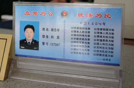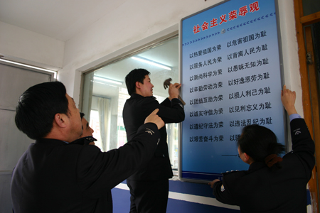 圖:該局濟(jì)川派出所將“八榮八恥”內(nèi)容制作成站牌,懸掛于派出所內(nèi)最醒目的位置,便于民警時(shí)時(shí)對(duì)照。(陸裕順 楊玉蘭攝報(bào))