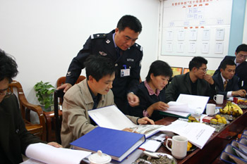 泰州市委組織部黨建工作調(diào)研組,在聽取了泰興市公安局黨建工作正規(guī)化建設(shè)情況匯報后,查閱相關(guān)臺帳