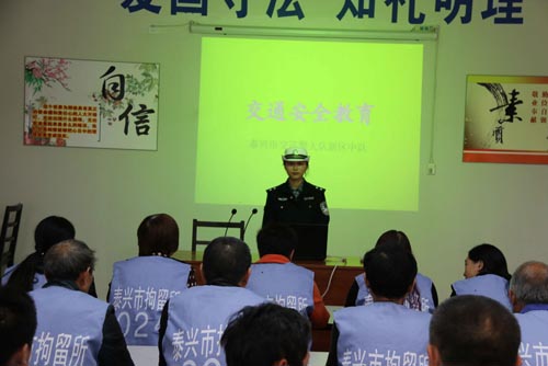 11月6日上午,新區中隊應邀到市拘留所,為該所拘留人員開展交通安全知識講座。期間,在中隊指導員的帶領下,宣教民警作了“人生坎坷萬里路 安全走好每一步”的交通安全知識講座,利用宣傳圖片講解了相關標志,并發放了自制的交通安全宣傳圖冊,演示了道路交通指揮手勢,通過人性化的講座及活動,進一步感化所有拘留人員的情感,同時讓他們在感化中學習到交通安全知識及一般常識,活動贏得了該所和受教人員一致好評。(顧劍鳴 黃新麗)