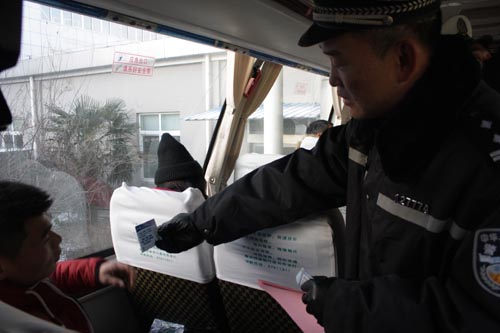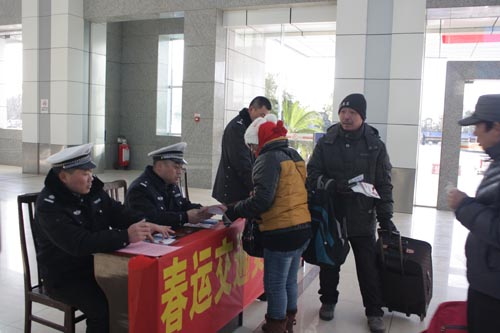 源頭管理是春運(yùn)的重頭戲。上午7時(shí),大隊(duì)車管所、法制宣傳中隊(duì)、根思中隊(duì)已經(jīng)在客運(yùn)車站忙乎開(kāi)了。車上,民警們張貼“春運(yùn)”友情提示,發(fā)放《致廣大駕駛?cè)艘环夤_(kāi)信》、宣傳畫(huà)冊(cè)、交警明信片;車下,檢查必備證件、春運(yùn)標(biāo)志,核定載客量,查看消防設(shè)施、安全出口。站里,根思中隊(duì)設(shè)立“春運(yùn)安全宣傳咨詢臺(tái)”,配備開(kāi)水、毛巾、藥水等大量便民服務(wù)用品,宣傳、解答有關(guān)冬季交通安全知識(shí);站外,民警維持交通秩序,幫助指導(dǎo)群眾有序進(jìn)站,組織候車旅客觀看公安部新下發(fā)的宣傳光盤(pán)和掛圖,注意安全,牢筑春運(yùn)交通安全第一道防線。 危化品運(yùn)輸車的安全是春運(yùn)安全管理中的重中之重。在市太平洋化學(xué)危險(xiǎn)貨運(yùn)有限公司,交警們了解車輛出行情況,查看安全賬冊(cè),并為每臺(tái)危化品運(yùn)輸車“體檢”,督促危化品運(yùn)輸企業(yè)落實(shí)春運(yùn)管理責(zé)任,切實(shí)抓好危化品運(yùn)輸安全路巡路查工作,確保行車安全。 為了打好春運(yùn)交通安全保衛(wèi)戰(zhàn),各中隊(duì)也紛紛做足“春運(yùn)安全功課”。一是在門(mén)口或辦公通道入口放置交通安全宣傳站牌,及時(shí)更新了春運(yùn)LED宣傳內(nèi)容,同時(shí),在違法處理、事故處理業(yè)務(wù)大廳貼放標(biāo)語(yǔ)、掛圖,擺放交通安全宣傳資料,播放交通安全宣傳光盤(pán);二是新區(qū)、城區(qū)中隊(duì)組織警力走上街頭,通過(guò)發(fā)放公開(kāi)信、宣傳資料的方式向過(guò)往群眾講解交通安全常識(shí);三是分界、虹橋、廣陵等中隊(duì)將警力集中到嚴(yán)格落實(shí)路面管理“三道防線”,在轄區(qū)內(nèi)主干道、省道沿線和農(nóng)村道路交通事故多發(fā)路段設(shè)立固定交通安全宣傳標(biāo)牌,擴(kuò)大宣傳覆蓋面,并且按照春運(yùn)交管工作責(zé)任制,層層落實(shí)責(zé)任,嚴(yán)查交通違法行為,在認(rèn)真落實(shí)必查糾、必處罰、必整改的“三必”措施的同時(shí)加強(qiáng)沿途客車人員的安全教育,以消除、整改事故、安全隱患為重點(diǎn),確保違法行為不過(guò)崗、隱患未改不過(guò)崗。 據(jù)了解,僅春運(yùn)第一天,出動(dòng)警力240余人次,查糾各類交通違法行為3100余起,查扣過(guò)境超載車輛12輛,駁載旅客110人次,其它違法行為車輛38輛,扣證11本,抓獲違法嫌疑人2人,消除事故隱患180處,接受群眾求助42人次,發(fā)放交通安全宣傳資料12400余份,受教育群眾達(dá)20000余人。(黃新麗) |