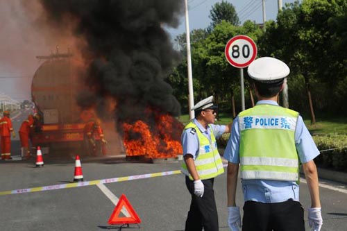 泰興交警大隊組織開展危化品運輸泄漏事故應(yīng)急演練