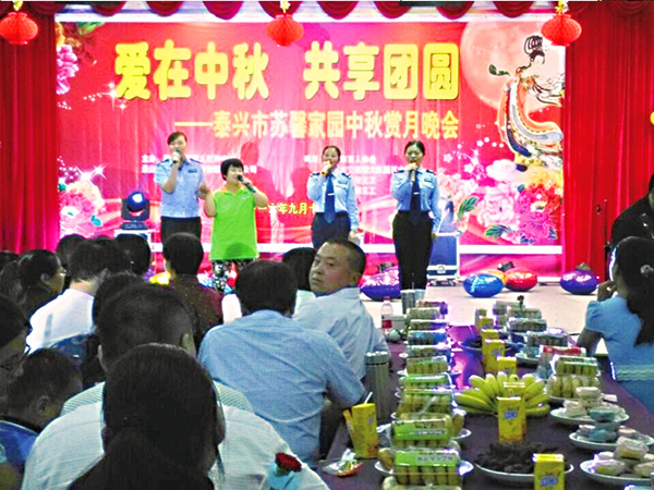 中秋節前夕,在市殘疾人托養中心,園友們和來自市盲人協會、平安義工、安德義工、交警大隊新區中隊的青年志愿者齊聚一堂,共同舉辦了主題為“愛在中秋·共享團圓”的中秋晚會。現場氣氛活躍,志愿者和蘇馨家園的園友們合作完成了獨唱、舞蹈、黃梅戲、武術等18個節目,度過了一個歡樂的中秋節。