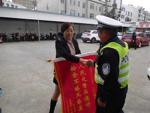 泰興交警大隊城區(qū)中隊輔警拾金不昧獲贈錦旗