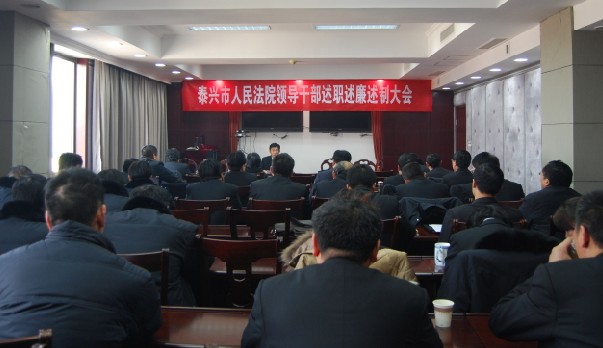 (尹明生 丁曉楚 攝影報道)近日,泰興法院開展領導干部述職、述廉、述制和制度評議活動,此項活動目的是使廣大干警牢固樹立群眾觀點,進一步改進工作作風,規范司法行為,切實提高履行審判職能,提高制度執行力。