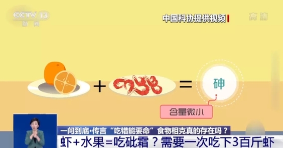 中國(guó)醫(yī)師協(xié)會(huì)營(yíng)養(yǎng)醫(yī)師專委會(huì)副主任委員李增寧:這個(gè)要看個(gè)人身體狀況,吃了以后不消化、胃脹,這是可能是身體弱,而不是它形成鞣酸蛋白就導(dǎo)致結(jié)石。這只是比較偶然的情況,大多數(shù)都沒問題。 蝦蟹+水果=吃砒霜? 有關(guān)食物相克的傳言,還有一條流傳甚廣,那就是蝦蟹不能與富含維C的水果同食,會(huì)引發(fā)“砒霜中毒”,這有科學(xué)依據(jù)嗎? 砒霜,化學(xué)名三氧化二砷。營(yíng)養(yǎng)成分表顯示,蝦蟹等海鮮食品的確含有微量砷元素,但主要為無害的有機(jī)砷,攝入后基本上會(huì)被原封不動(dòng)排出體外。