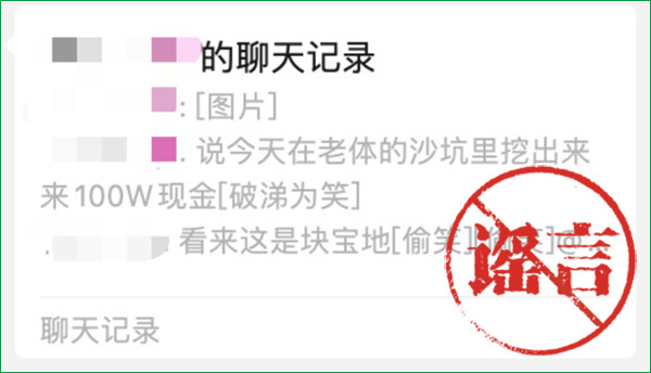 這段聊天記錄顯示,“無(wú)錫體育公園的沙坑里挖出來(lái)100萬(wàn)現(xiàn)金”,而且“是小朋友挖出來(lái)的”,甚至配上了兩張照片: