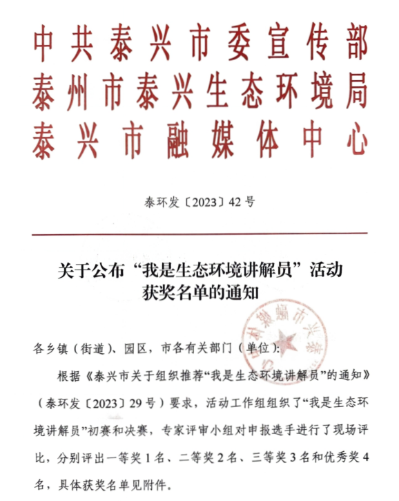 六五環(huán)境日|泰興市成功舉辦生態(tài)環(huán)境講解員大賽