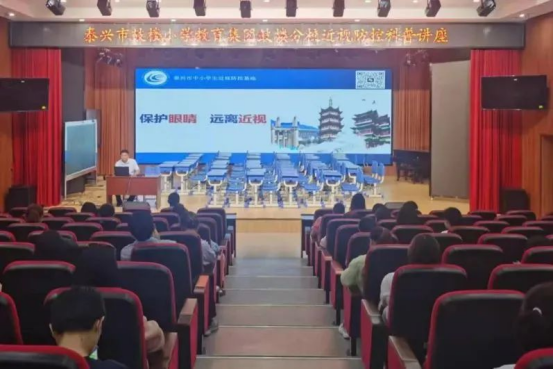 泰興師范附屬小學組織部分年級的學生開展了主題為“關(guān)注普遍眼健康”的科普活動,活動共三個環(huán)節(jié)。泰州市中小學生近視防控基地的楊星月醫(yī)生為孩子們做了主題為“保護眼睛,遠離近視”的知識講座,從“近視的危害”“如何預防近視”“如何控制近視”三部分進行了精要、易懂的講解;江蘇省近視防控宣講員李元老師帶領(lǐng)會場的師生一起做“米”字操,向上、向下、左上右下、右上左下……每一次眼球的運動都是孩子們對眼睛的有效保護,也是孩子們對眼部健康的渴望;宣講員楊舒涵同學宣讀《近視防控倡議書》,倡議書涵蓋每天兩小時戶外運動、用眼三個20原則、三個一的正確用眼姿勢等具體內(nèi)容。