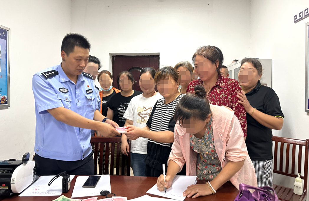9月8日 泰興市公安局燕頭派出所民警 將賁某拖欠的部分工錢 發(fā)放到10名群眾手中