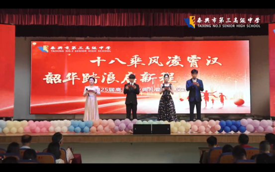 在泰興市第三高級中學(xué),“十八乘風(fēng)凌霄漢 韶華踏浪啟新程”2025屆高三畢業(yè)典禮暨成人儀式隆重舉辦,高三全體師生和家長代表濟(jì)濟(jì)一堂,共同見證這一難忘時刻,度過這段美好時光。走過成人門、戴起成年徽章,學(xué)子們吟誦青春誓言、譜寫追夢華章,美好的未來從這里起步。師者寄語承厚望,唯盼學(xué)子揚(yáng)帆赴錦程;家長囑托助成長,唯盼孩子乘風(fēng)抵彼岸。