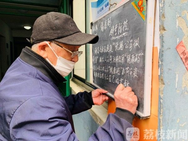 得知村里要召集志愿者,石紀(jì)金第一時間報名,受到勸阻后他反問,作為老黨員,我不帶頭誰帶頭!我年紀(jì)大了,干不了防控一線的體力活,難道搬個板凳在卡口值守都干不了嗎? 在石紀(jì)金的堅持下,他披上紅馬甲,成為了一名疫情防控志愿者。“現(xiàn)在疫情形勢嚴(yán)峻,我要做點力所能及的事,以后不管什么時候,只要黨和人民有需要,我總是隨叫隨到的!”這就是這位93歲老黨員的初心。 在無錫市新吳區(qū),88歲的周英榮也想報名一線志愿者,可是社區(qū)不讓,于是他成為了社區(qū)草根宣講隊成員:在樓道門口放了一個小黑板,把專家講的防疫知識、疫情的形勢、提醒的注意點寫上,讓大家進出樓棟都能看見。