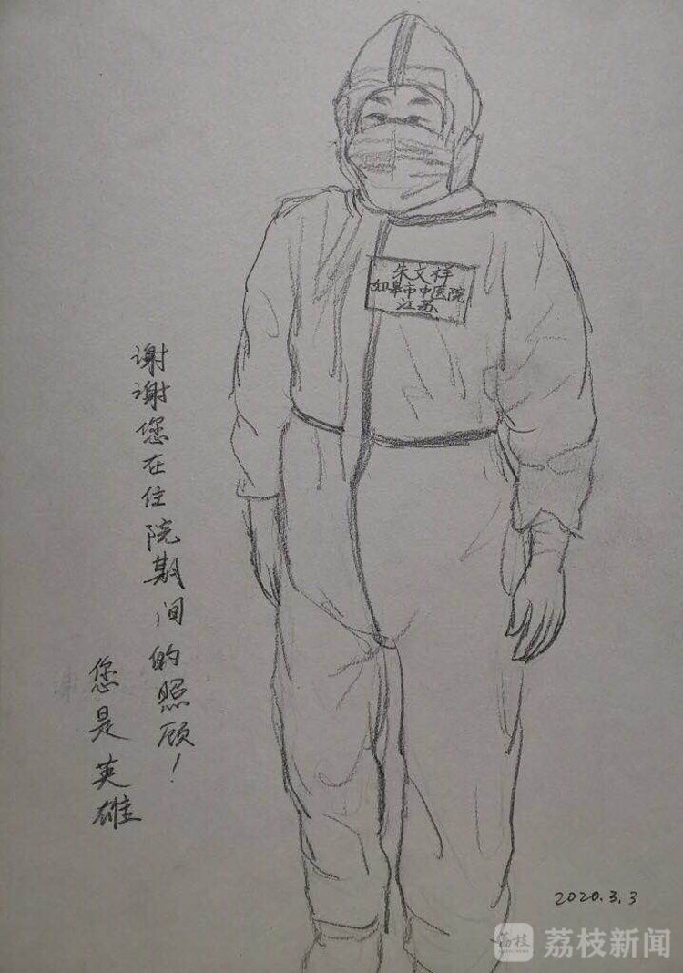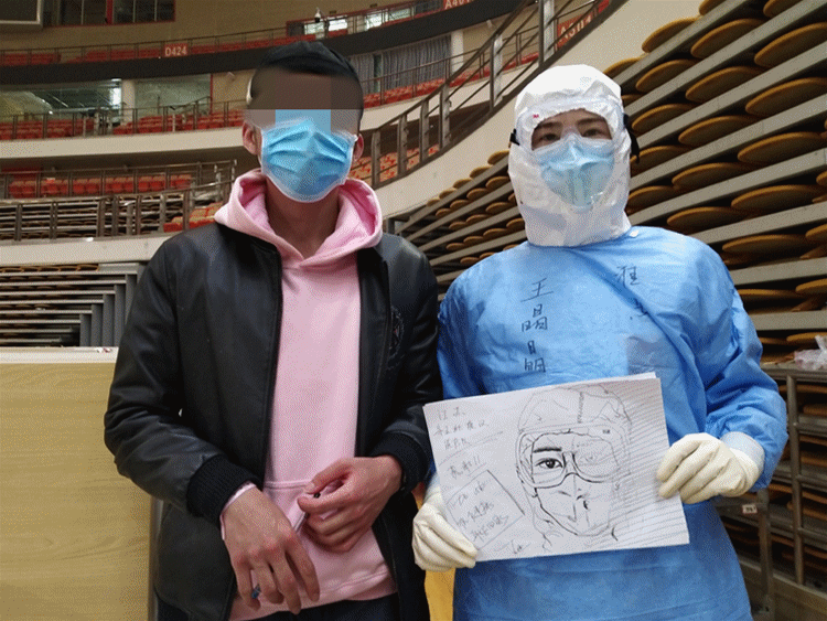 3月2日、3日,武漢體育中心方艙醫(yī)院迎來“出院潮”,連續(xù)兩天有超過100名患者出院。有的患者在出院前對醫(yī)務(wù)人員說:“等疫情結(jié)束,你們到武漢來玩,聯(lián)系我,我全包!”有的患者出院當(dāng)天拿著紙筆來到醫(yī)務(wù)人員面前說:“我想畫張我心目中你的樣子。雖然我不知道防護(hù)服下你們的樣子,但是我永遠(yuǎn)忘不了你們照顧病人時那溫柔的眼神!”