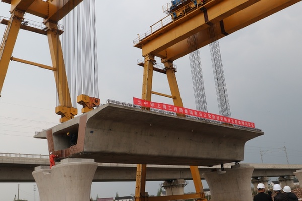 南沿江城際鐵路白茆河特大橋首榀箱梁架設完成