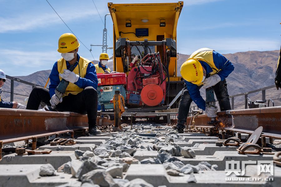 拉林鐵路首次焊軌現場(央廣網發 通訊員供圖) 據介紹,拉林鐵路無縫線路焊接采用了國內先進的移動閃光焊技術,為每個焊接好的焊頭建立起獨有的“信息檔案”,檔案還包括焊接接頭記錄表,可實現質量追溯。焊接好的鋼軌,將通過應力放散鎖定、大機精搗、線路精調等作業,最大限度提高行車面的平順度,在列車高速行駛過程中,保證旅客乘坐得平穩舒適。