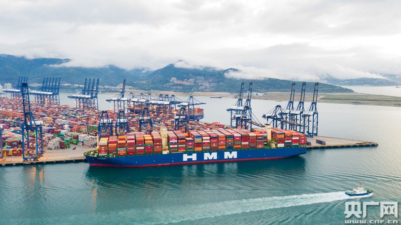 全球最大24000標箱級集裝箱船首航鹽田國際(央廣網發 通訊員王喆供圖) 央廣網深圳5月8日消息(記者鄭柱子 通訊員王喆)2020年5月7日晚,位于深圳的鹽田國際集裝箱碼頭迎來了目前全球最大運載量的集裝箱船——“HMM Algeciras(現代商船阿爾赫西拉斯)”輪首航。