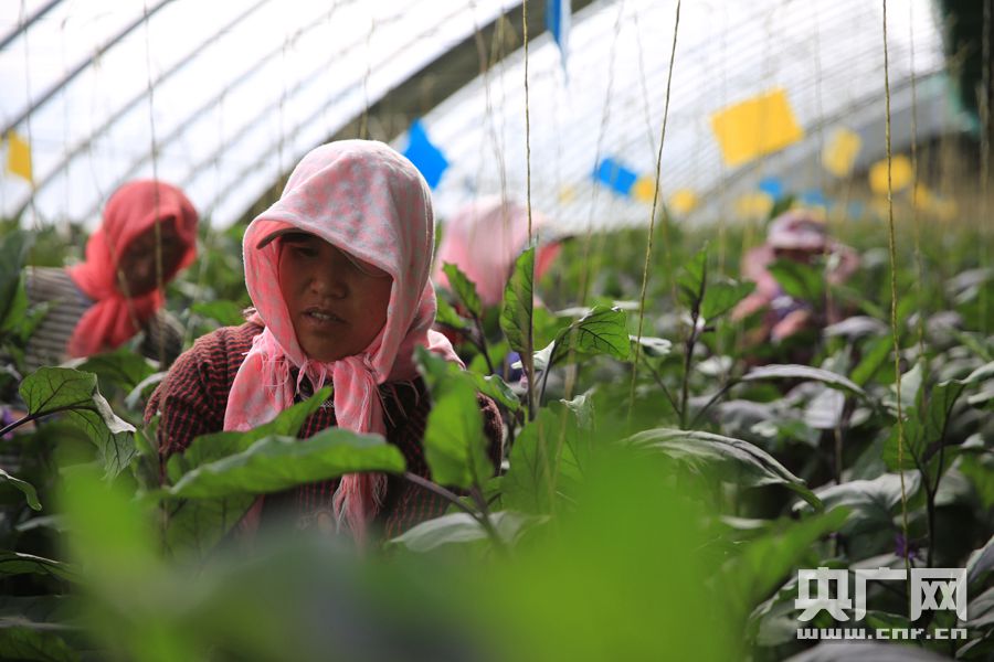 村民在大棚里務工(央廣網發 通訊員供圖) 這里的大棚,被村民稱為面包棚,是第三代設施農業大棚,采用新型保濕材料和鋼架結構,相比傳統大棚,具有占地少、空間利用率大、抗自然災害能力強等優勢。基地大棚內瓜果類一年種2茬,葉菜類一年種5茬。紅河村通過發展大棚設施蔬菜種植等2019年農民人均可支配收入12000元,比固原市平均水平高1300多元。
