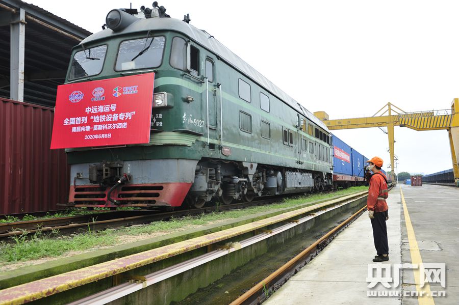 “地鐵施工設備專列”中歐班列從南昌向塘國際陸港發出(央廣網發 通訊員供圖) 據介紹,專列運輸的貨物為大型皮帶機器設備,是地鐵地下施工的專用運輸設備,將為盾構機掘進產生的渣土運輸提供高效保障,貨值1200多萬元人民幣,將極大滿足由央企中國鐵建國際集團承建的莫斯科地鐵項目的施工需求。該班列由南昌中歐班列運營中遠海運籌備組織、中鐵集裝箱公司負責鐵路全程運輸,將在15天左右抵達俄羅斯首都莫斯科。此次專列的開行也為國產高端智能制造走出國門開啟了一條全新運輸方式和途徑。 中遠海運江西公司總經理胡海燕表示,“中遠海運依托依托集團核心優勢在大件和整裝設備運輸項目方面有專業人員和豐富的成功經驗,能夠為整裝設備客戶提供綜合型全程物流方案,同時憑借南昌至莫斯科精品中歐班列路成熟,運行時間穩定的優勢,在南昌海關和南昌鐵路局的大力支持和幫助下,為客戶提供了訂制的中歐班列運輸服務,贏得了中國鐵建和莫斯科收貨人的信賴,最終選擇了從南昌向塘口岸933專用線出運。”