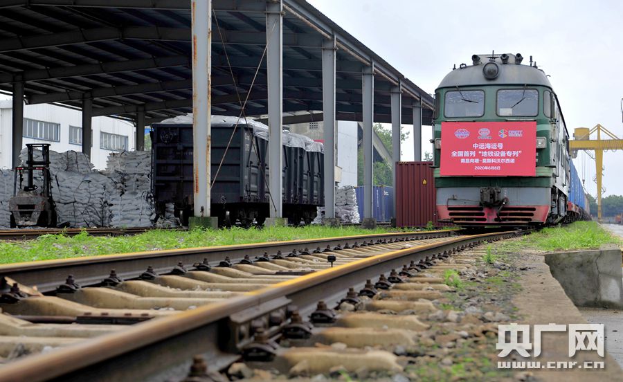 “地鐵施工設備專列”中歐班列從南昌向塘國際陸港發出(央廣網發 通訊員供圖) 央廣網南昌6月8日消息(記者謝元森 通訊員李慳)6月8日,一趟滿載著大型地鐵地下施工專用設備的中歐班列專列從南昌向塘國際陸港駛向俄羅斯莫斯科,這是全國開行的首趟地鐵施工設備專列,也是南昌向塘國際陸港繼食品專列、防疫物資專列之后又一定制專列。