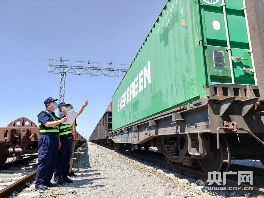 霍爾果斯海關關員對班列進行監管(于文靜 攝) 央廣網霍爾果斯6月14日消息(記者吳卓勝 通訊員張玖一)13日18時,“穗新烏”中歐班列在海關關員的現場監管下,順利駛離新疆霍爾果斯鐵路口岸,將在10天后到達目的地烏茲別克斯坦塔什干站。由此,霍爾果斯鐵路口岸中歐班列開行線路新增至18條,標志著烏魯木齊海關所屬霍爾果斯海關再添出口新線路。 據了解,該趟班列6月6日從廣東(大朗)鐵路國際物流基地啟運,搭載45個集裝箱,貨物總重288.69噸,由霍爾果斯鐵路口岸出境后,途經哈薩克斯坦,最終運抵達烏茲別克斯坦塔什干站,全程約7000公里。
