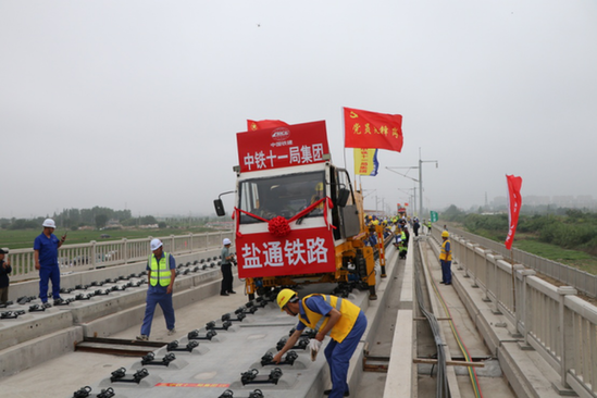 重點工程進行時:鹽通高鐵開始鋪軌
