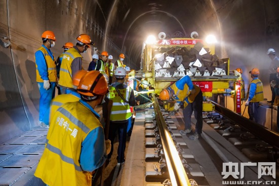 中鐵一局大臨鋪架工區負責人王富榮介紹,整個鋪軌施工工期很緊,為確保開通目標,他們分階段倒排工期,前期用公鐵兩用架橋機架設T梁,T梁架設完成后,采用人機結合的方式進行鋪軌,并采取雙班施工作業,每天預計可完成無砟軌道3公里、有砟軌道1公里的鋪設。