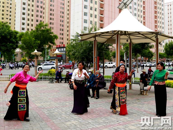 平安區化隆路社區各族居民在跳藏族舞蹈“鍋莊”(央廣網發 張雷攝) “中華民族大家庭,五十六朵花簇擁,兄弟姐妹是一家,人人都愛我中華……”伴隨著悠揚婉轉的青海賢孝,社區民樂隊正在文化活動室彈唱《民族團結一家親》。 樂隊隊長達明勝退休前是海東市互助土族自治縣一所中學的校長。這首青海賢孝曲調的《民族團結一家親》是他填詞作曲,傳遞56個民族守望相助、團結奮斗的情誼。 達明勝告訴記者:“樂隊有22位成員,平日里聚在一起排練、演出,有漢族、回族、撒拉族、土族,都是在退休后加入社區民樂隊,老有所樂。大家的心擰在一起,為社區民族團結進步繼續發光發熱。” 化隆路社區現有各民族常住居民9016戶23902人,社區組建的文藝隊、民族樂隊、秧歌隊和老年書畫協會,成為各民族聯誼溝通的載體。每逢傳統節日,社區還組織開展文體活動,組織少數民族骨干隊伍參加文藝表演,舉辦手工藝制品、書畫、攝影展等活動。