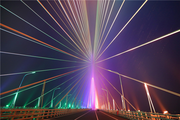重點工程進行時:滬通長江大橋首次系統調試燈光