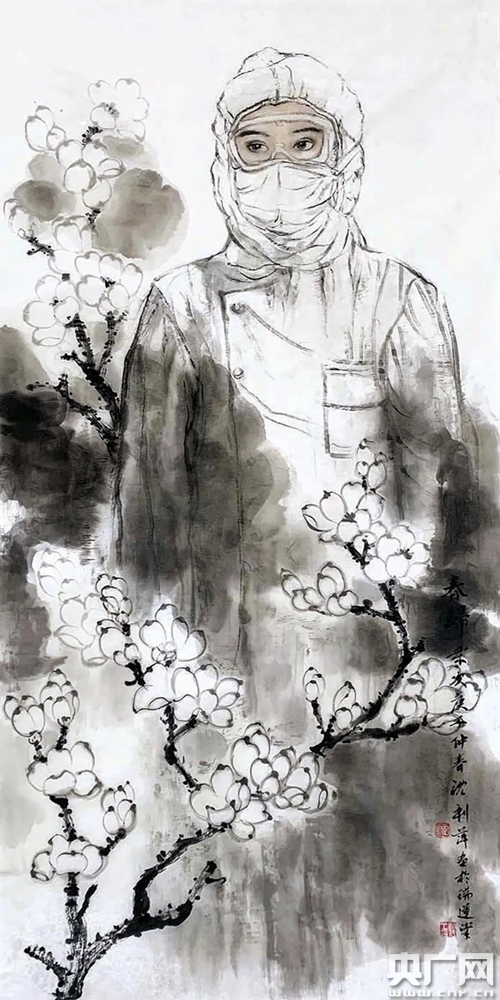 主題展作品(央廣網記者 廉軍 攝) 央廣網銀川7月7日消息(記者廉軍)寧夏書畫院抗疫主題作品展今天在銀川西部美術館開展,參與畫家17位,共展出作品51幅作品。 今年的疫情牽動了全國人民的心,也牽動著每一個美術工作者的心。全國人民眾志成城,抗擊疫情取得階段性勝利。寧夏書畫院發揮業務優勢,以“畫”抗疫,圍繞疫情中表現突出的人與事,創作出表現抗擊疫情題材的作品200余件,并在寧夏書畫院微信公眾號中舉辦了6期抗擊疫情微展覽。用藝術家的方式表達對抗疫工作的關切與支持,用筆墨描繪人間大愛,禮贊英雄,凝聚人心。 寧夏書畫院院長周一新表示,疫情面前每一個人都是戰士,用書畫作品體現文藝工作者的責任和擔當是寧夏書畫院“戰疫”的一種方式。主題作品展從200余件中精選出51幅作品對外展出,作品中藝術家用獨特的視覺去解讀展現全民戰疫,表達凝結敬意。