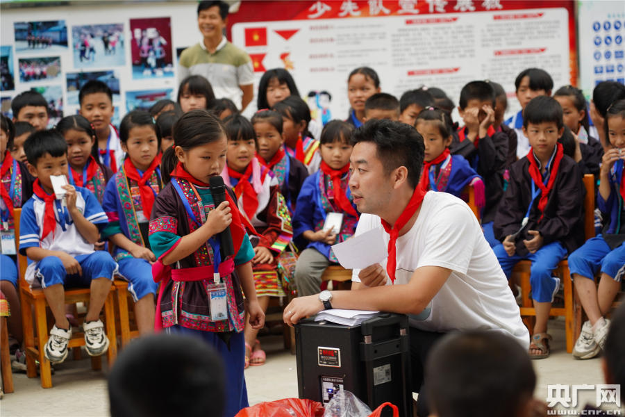 湛江邊檢赴廣西扶貧助學(央廣網發 通訊員供圖) 現場教育向長效延伸 “敬禮!”當天上午,八吉小學在操場舉行了特殊的升旗儀式,隨著一聲響亮的口號,整齊列隊的邊檢民警和穿著民族服飾的各年級學生向著緩緩升起的五星紅旗敬禮。執勤四隊教導員丁大衛作為民警代表擔任了升旗手,在他身邊,是兩名擔任護旗手的侗族小學生。活動中,丁大衛分享了在國門口岸執勤、堅守和抗疫的故感人故事,為學生們開展了一次生動的愛國主義教育。 “聽我說謝謝你,因為有你,溫暖了四季……”孩子們純真的歌聲回蕩在八吉小學的操場上。活動當天,全體學生搬著板凳圍成同心圓,湛江邊檢站邀請駐地學校老師為他們上了一堂生動的聲樂課。短短的兩節課時間,學生們聽得津津有味,下課鈴響起了也舍不得離開,最后用一首《聽我說謝謝你》說出了對邊檢民警和老師的感恩之心。 助學不僅要捐贈物資,更要“送知識”。八吉小學師資隊伍單薄,教師往往都是“全科教師”,還要負責照顧孩子的生活細節,很難在各類課程上做到精通,聲樂、美術等“副科”更是主要靠孩子們自己練習。為了解決教學資源匱乏的難題,湛江邊檢站多次走訪,邀請駐地學校與八吉小學簽訂了結對共建協議,建立了互助教學的模式,協議定期開展送教下鄉活動,拓寬教育資源;同時,多方收集駐地優秀學校各科目精品課程教學錄像,探索開展線上+線下“雙師教學”,通過播放錄像授課和老師現場教學,讓學生們在山區也能接觸到專業、優秀的課程教育,進一步豐富學校教學模式,扶志扶智向長遠發展。 湛江邊檢赴廣西扶貧助學(央廣網發 通訊員供圖) “他是我最喜歡的英語老師” 當天下午,支教民警農衛甲接到了學生家長的電話,聽到他任教學生的表現,又好笑又心疼。當時,助學活動結束后,他乘坐車輛到縣城辦事,學生們看見“農老師”背著包上車,以為他要結束支教了,回到家里后不高興又不說話,直到家長問起才哭著說農老師以后不來給他們上課了。 今年5月,湛江邊檢站民警農衛甲主動響應國家移民管理局和珠海邊檢總站支教號召,通過層層選拔成為全國移民管理機構77名支教民警中的一員,負責八吉小學三到五年級的英語、體育課程教學任務。“既然做了決定,就要負責到底。” 為了讓課堂更加生動有趣、更好的調動學生們上課的積極性,農衛甲絞盡腦汁,每晚備課到半夜一兩點,遇上停電點起蠟燭繼續奮戰。這份認真和執著讓他很快贏得了學生們的喜愛。學生吳歡迎在作文中寫道:“有一個好消息,新來了一位英語老師,他的英語讀得很標準,他是我最喜歡的英語老師。” “學習、洗禮、收獲。終其一生,孩子們的夢想是翻越大山,走向外面精彩的世界。或許更應該的是,首先有人引領他們翻過心中的大山。”參加此次助學活動,一雙雙渴望知識的眼睛,讓負責對口幫扶工作的湛江邊檢站副站長胡志輝深受觸動。他表示,教育是脫貧的治根之策,下一步,湛江邊檢站將繼續竭盡所能,為八吉小學提供支持,并動員更多的社會團體和熱心人士參與到扶貧助學行動中來,共同用愛心為貧困山區孩子們的夢想“插上一雙奔跑的翅膀”。