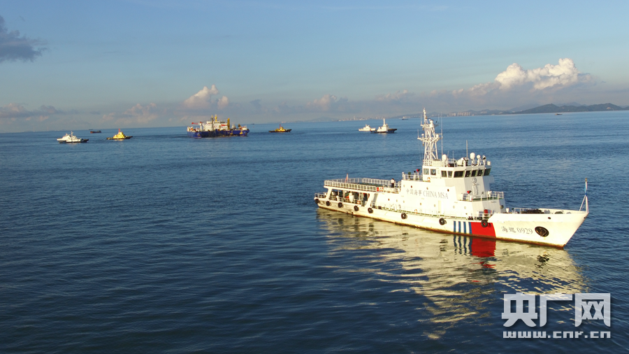 粵港澳大灣區深中通道建設海域(央廣網發 通訊員供圖)