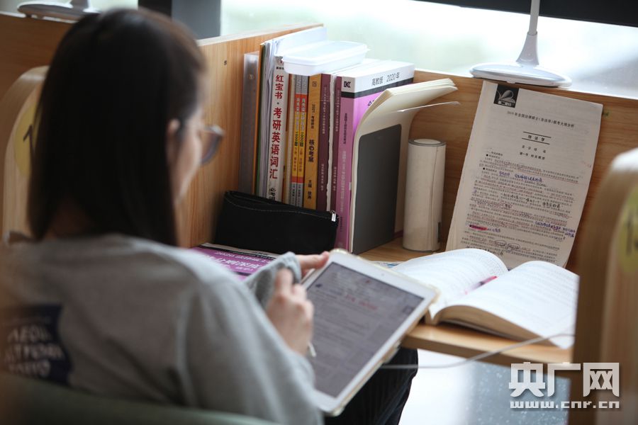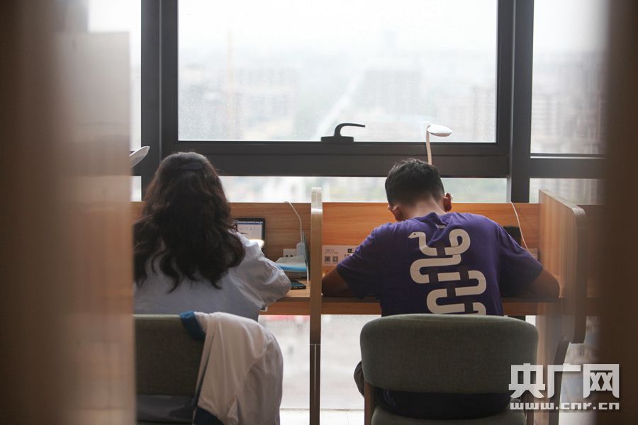 專心自習(央廣網記者 徐升 攝) “有一個女孩子在考研前20多天,辦了一個短時自習卡,她每天很準時來。我8點開門,她6、7點鐘就自己來這兒輸門禁密碼進來了,一直學到晚上兩三點,就這樣一直持續了20多天。”在經營自習室的這半年時間里,自認為已經小有成就的宋嘉斌看到了在這座城市最上進的一面,有很多人在不停地“奔跑”,努力地拼搏著。宋嘉斌說:“大家都很用功、很努力,不管他成不成功,考沒考上,至少讓我見識到了生活中還有這么多人在努力、在用功,自己也慢慢受到了影響,絕不敢停下腳步來。”