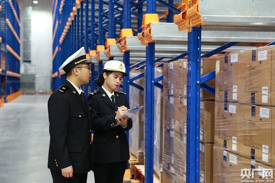 資料圖:廣州海關所屬南沙海關關員在南沙保稅港區醫藥倉庫巡倉(央廣網發 韓健全 攝)
