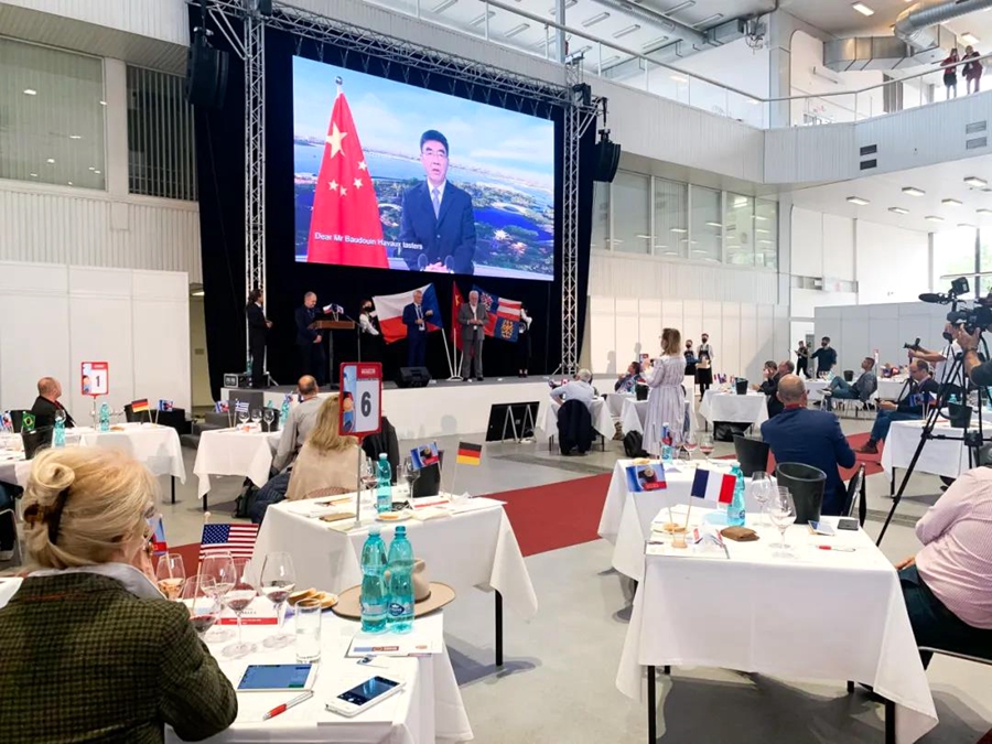 銀川市市長楊玉經通過線上視頻的方式參加交接儀式并致辭(圖片由比利時布魯塞爾國際葡萄酒大獎賽組委會提供) 楊玉經在致辭中表示,組委會把第28屆大賽舉辦權授予銀川市,是對銀川的信任與認可,也是對中國這個擁有巨大消費潛力新興市場的重視和青睞,賦予了賀蘭山東麓葡萄酒產業發展的夢想與期待。銀川將在組委會的指導下,積極借鑒往屆大獎賽成功經驗,以酒為媒、傳承友誼、深化合作、創新發展,舉辦一屆獨具特色、精彩紛呈、令人難忘的葡萄酒國際賽事活動,架起中外葡萄酒行業溝通發展的橋梁,攜手開創世界葡萄酒產業發展的新局面,讓寧夏葡萄酒“當驚世界殊”。