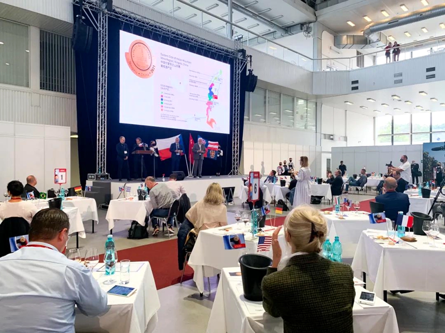 第27屆比利時布魯塞爾國際葡萄酒大獎賽閉幕會(圖片由比利時布魯塞爾國際葡萄酒大獎賽組委會提供) 第28屆比利時布魯塞爾國際葡萄酒大獎賽將于2021年5月下旬在寧夏銀川國際會展中心舉行。屆時,銀川將正式成為“世界酒都”,迎來50個國家和地區的近400名評委,對近萬款葡萄酒開啟3天嚴苛的品質評估。期間,還將組織多場生動的主題論壇和大師班,以及產區及文化參訪活動,向世界展示代表著中國葡萄酒最高水平的“紫色名片”。 |