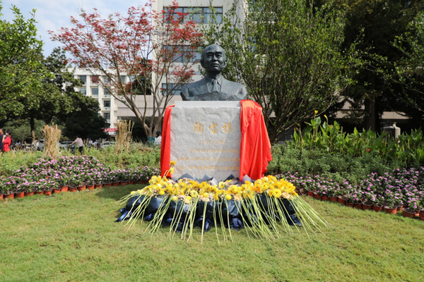 學生向陶寶祺院士雕塑獻花 在該校明故宮校區東華湖畔,陶寶祺院士雕塑揭幕。據介紹,陶院士作為機械結構力學及控制國家重點實驗室的奠基人之一,是南航培養的第一位院士,為南航力學學科的發展做出了突出貢獻。 “父親是南航人,四十余年,他與南航互相成就。”在揭幕儀式上,陶寶祺院士的女兒陶寧說,“父親告訴我,要做好人。他是如此要求自己的,也是如此要求我的,更是如此要求學生的。”據陶寧回憶,陶寶祺院士1991年訪學回國之際,沒有帶其他行李,只有八大箱的外文資料,這也成為了1992年智能材料與結構小組組建之初的重要支撐。46歲時,出于學生知識體系的考量,陶院士主動提出開設“張量與連續介質力學”新課,在學校缺乏師資的情況下,他背著鋪蓋去了浙江大學,跟本科生一起聽課一學期,之后回來在南航開設新課程。陶院士病重期間,他在病床上仍然堅持編寫教材,出版了《智能材料結構》專著,并成功申請了國家重點實驗室,獲得國家自然科學基金項目驗收等。