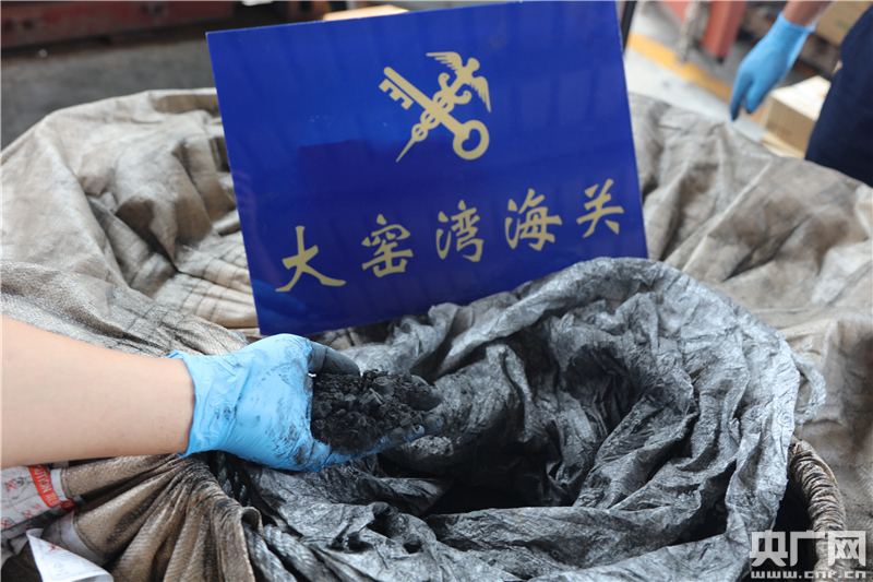 大連海關查獲的“洋垃圾”(李進 攝) 海關關員在對一票從國外進口申報品名為次氧化鋅的貨物查檢時,發現其為灰黑色粉末,有少量銀色顆粒及浮渣,疑似為我國禁止進口固體廢物,隨即進行取樣送檢。經過對該樣品進行固體廢物進行屬性分析鑒定,該樣品氧化鋅含量不符合標準的限量要求,被認定為含鋅、銅等廢料經冶煉工藝產生的含鋅粉塵收集物,不符合國家、地方制定或行業通行的被替代原料生產的產品質量標準,該批貨物被判定屬于禁止進口的固體廢物。 |