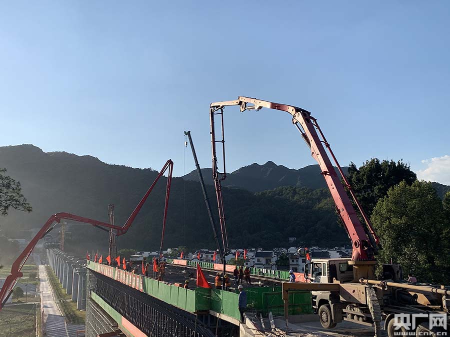 項目施工現場 央廣網黃山9月8日消息(記者張秋實 通訊員劉創輝 江鵬)今天凌晨,昌景黃鐵路休寧河特大橋64米簡支梁澆筑完成,為后續施工奠定了堅實基礎。 休寧河特大橋位于安徽省休寧縣境內,是昌景黃鐵路全線重要控制性工程之一。此次施工的橋梁上跨205國道,梁面跨度64米、寬12.6米,是目前國內在建最大跨度高速鐵路現澆簡支梁。 據了解,昌景黃鐵路線路全長308公里,設計時速350公里,該鐵路聯系皖贛兩省,是國家鐵路中長期規劃的重點鐵路項目,也是贛中地區至長三角地區的重要快速客運通道。其中,由中鐵四局承建的昌景黃鐵路站前一標管段全長26.206公里。目前,橋梁墩身、路基、隧道等均已施工過半,預計將于2023年建成通車。屆時,黃山至景德鎮將實現半個多小時通達。 |