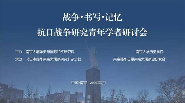 今年是中國人民抗日戰爭勝利75周年,為銘記抗戰記憶,加強青年學者之間的學術交流,9月16-17日,由南京大屠殺史與國際和平研究院、南京大學歷史學院主辦,《日本侵華南京大屠殺研究》雜志、南京侵華日軍南京大屠殺史研究會承辦的“戰爭·書寫·記憶:抗日戰爭研究青年學者研討會”以線上形式召開。