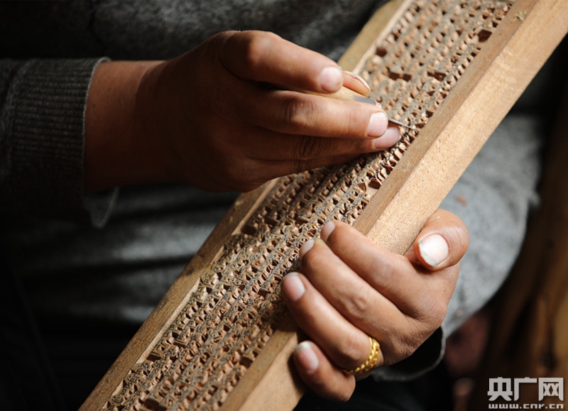 村民白瑪堅參憑借技藝雕刻出嶄新生活(中央廣播電視總臺央廣記者 普布次仁 攝) 在澤培的帶動下,現在的外沖村有60余名木雕藝人。農閑期,他們用大大小小的刻刀,將經文刻進木刻板出售,已經成為木雕人增收的重要渠道之一。澤培說年幼時只知道學藝的苦,現在看到古老的技藝在深山峽谷中再放異彩,才感覺到無限的欣慰和自豪。