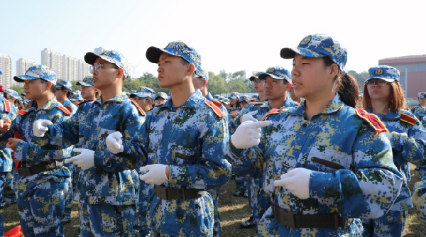 9月30日上午,南京特殊教育師范學院舉行軍訓總結表彰暨開學典禮,2146名學生身穿迷彩服,伴著激昂的國歌聲,用手語“唱”響國歌,以這樣一種特殊的方式來“表白”祖國。