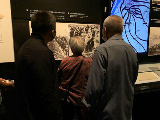 南京大屠殺幸存者岑洪桂和妹妹岑洪蘭在參觀 |