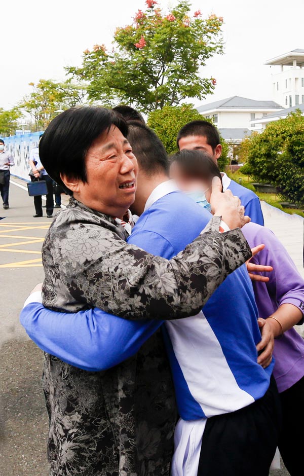 張連珍在監管區大門前擁抱當天刑滿釋放的孩子、深情囑咐 在監管區大門前,張連珍等領導走到當天刑滿釋放人員中間深情囑咐,和他們的家人共同接孩子回家。(虞啟忠 蘇玉新) |