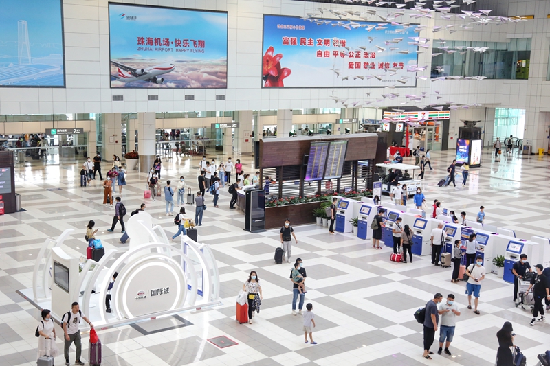 國慶假期首日的珠海機場出發大廳(央廣網發 通訊員供圖)