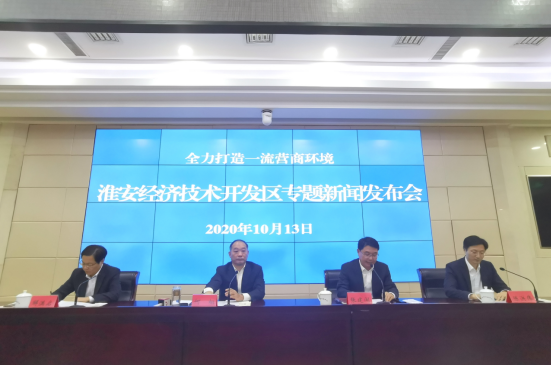 淮安經濟技術開發區“全力打造一流營商環境”發布會現場 今年以來,該區創新實施疫情最小單元化防控模式,探索跨行業“共享員工”,發放“速易貸”中小微企業貸款2.345億元,兌現惠企政策資金2.3546億元,堅定了一大批客商的投資預期和發展信心。截至目前,已簽約總投資50億元鵬鼎高端智能制造、總投資50億元鑫盛豐智能制造產業園等億元項目28個、總投資175.08億元;完成規上工業開票194.49億元、同比增長1.88%;實際到賬外資1.12億美元、同比增長83%。 “堅持以營商環境的確定性有效對沖外部環境的不確定性!焙舞蚪榻B,該區為著力打造“公平、誠信、法治、高效”的營商環境,注重早謀先動,在高效組織實施上持續發力。2020年,首次將營商環境建設工作納入高質量跨越發展考核,對11項、43個營商環境評價指標進行任務分解,進一步壓實責任、凝聚合力。注重目標引領,在內涵豐富提升上持續發力。以公平為根本,打造活力開放的營商環境,對所有企業一視同仁,充分維護其平等的市場主體地位。深化“2330”(開辦企業2個工作日內完成、不動產權交易登記3個工作日內完成、施工許可30個工作日內完成)審批改革,讓企業少跑腿、少煩心。