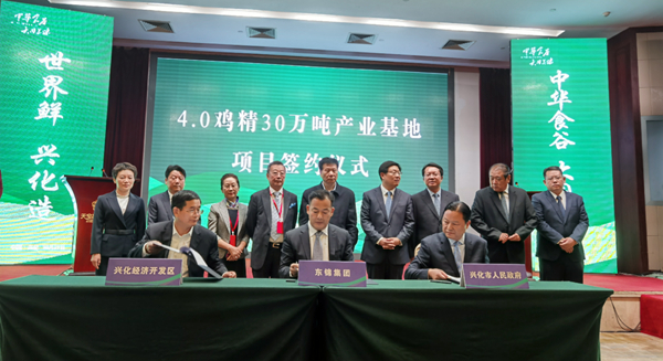 會議現場 會上,興化市委書記葉冬華坦言,短短三年時間,集聚區從無到有、聚沙成塔,一個特色鮮明、前景廣闊的產業集群已具雛形。 活動當天,興化健康食品和調味品產業又添“新食材”:頂康、五得利面粉二期、福潤等20個食品類項目開工,總投資85.6億元;“世界鮮興化造”東錦集團4.0雞精30萬噸產業基地項目、寰達(興化)食品項目、四季胖哥食品物流項目、嘉豪食品產能轉移項目等16個食品類項目簽約,計劃總投資108億元。 在大項目好項目扎堆落戶興化的同時,安井食品、頂康食品、伽力森等重點企業競相擴大投資,二期三期現象不斷涌現。開工儀式上,頂康食品相關負責人表示,“我們在興化投資,就是看中興化的資源、生態等方面的優勢,更重要的是當地政府的服務理念,讓我們倍感親切,讓我們調味品產業找到了‘家’。”