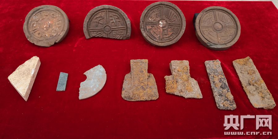 下站祭祀遺址出土遺物(央廣網發 陜西省考古研究院供圖) 通過田野調查和勘探,考古人員初步明確該遺址中心有一處面積較大的磚瓦堆積區,約2000平方米,平面呈不規則“凹”字型,磚瓦堆積區及周邊分布有各類祭祀坑。祭祀坑形制主要分為長方形和長條形兩種類型。長方形祭祀坑較多,主要分布于磚瓦堆積區西側,方向基本為東西向。長條形祭祀坑分布于磚瓦堆積區東側,南北向平行分布,分布范圍約7萬平米,寬窄相間,寬則1米,窄則0.6米,長度一般約120米。